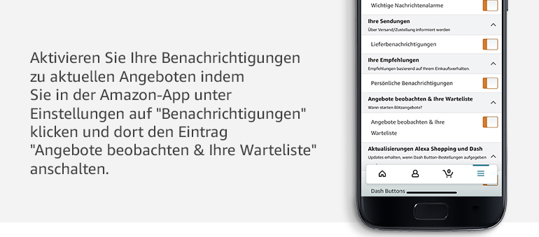 Zusätzlich bietet Amazon selbst schon einige Tips für die Vorbereitung auf den Prime Day an. Besonders hilfreich ist der Hinweis auf die Benachrichtigungsfunktions innerhalb der Amazon-App: